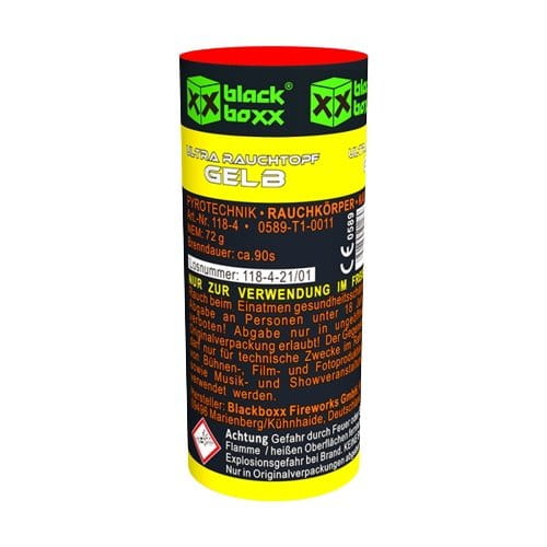 Der Blackboxx Ultra Rauchtopf T1 mit intensiver Farbe und starker Rauchentwicklung.