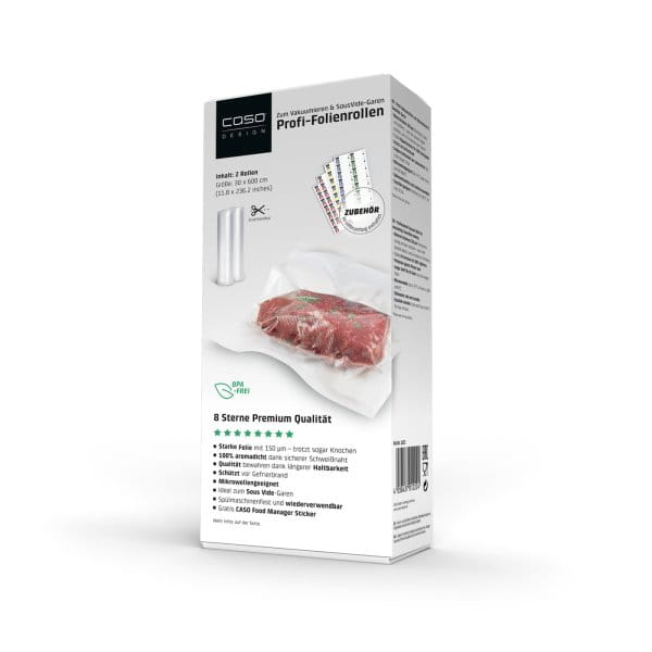 Mit der hohen Vakuumleistung des Caso VC 150 halten Sie ihre Nahrungsmittel deutlich länger frisch. Der Vakuumierer verfügt über eine Vakuumleistung von ca. 90 %; Wildbret und andere Lebensmittel werden so bei -0,8 bar sicher vakuumiert. Auch ohne Konservierungsmittel bleiben sie so lange frisch. Ideal ist das Vakuumieren auch für die Portionierung und die Lagerung von Waren. Die Beutel, die der Caso VC 150 verwendet sind reißfest und verfügen über eine Rippen-Struktur, die für ein perfektes Vakuum sorgt. Sie sind außerdem mikrowellenfest und in vier unterschiedlichen Größen erhältlich.