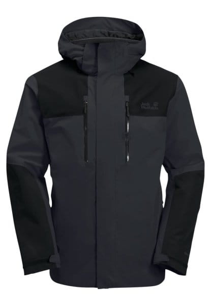 Die Kapuze der Jacke ist abnehmbar und am Schulterbreich, den beiden Vordertaschen mit Reißverschlüssen sowie an den vorgeformten Ärmeln gibt es Verstärkungen. Die Vordertaschen und die beiden großen Innentaschen können mit Reißverschlüssen geschlossen werden. Am Bund und an der Unterkante ist jeweils eine Weitenregulierung mittels Kordelzug möglich. Die Weite der Ärmelbündchen kann jeweils mithilfe eines Riemens mit Klettverschluss reguliert werden.