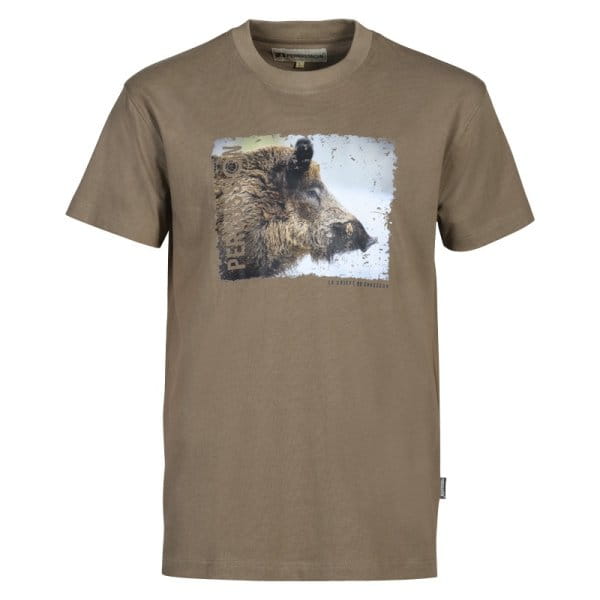 Auf der Brust befindet sich jeweils ein großes Jagdprint; Das Shirt ist mit einem Rundhalsausschnitt versehen.