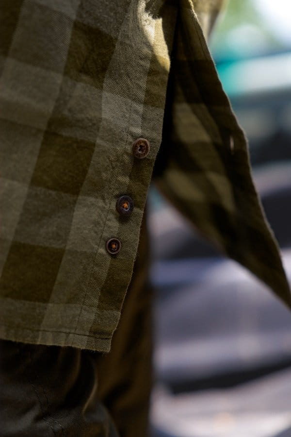 Das Hemd verfügt über praktische Druckknopfverschlüsse, zwei Brusttaschen und dezente Kragenknöpfe für einen eleganten Look. Es ist in rot und grün kariert erhältlich.