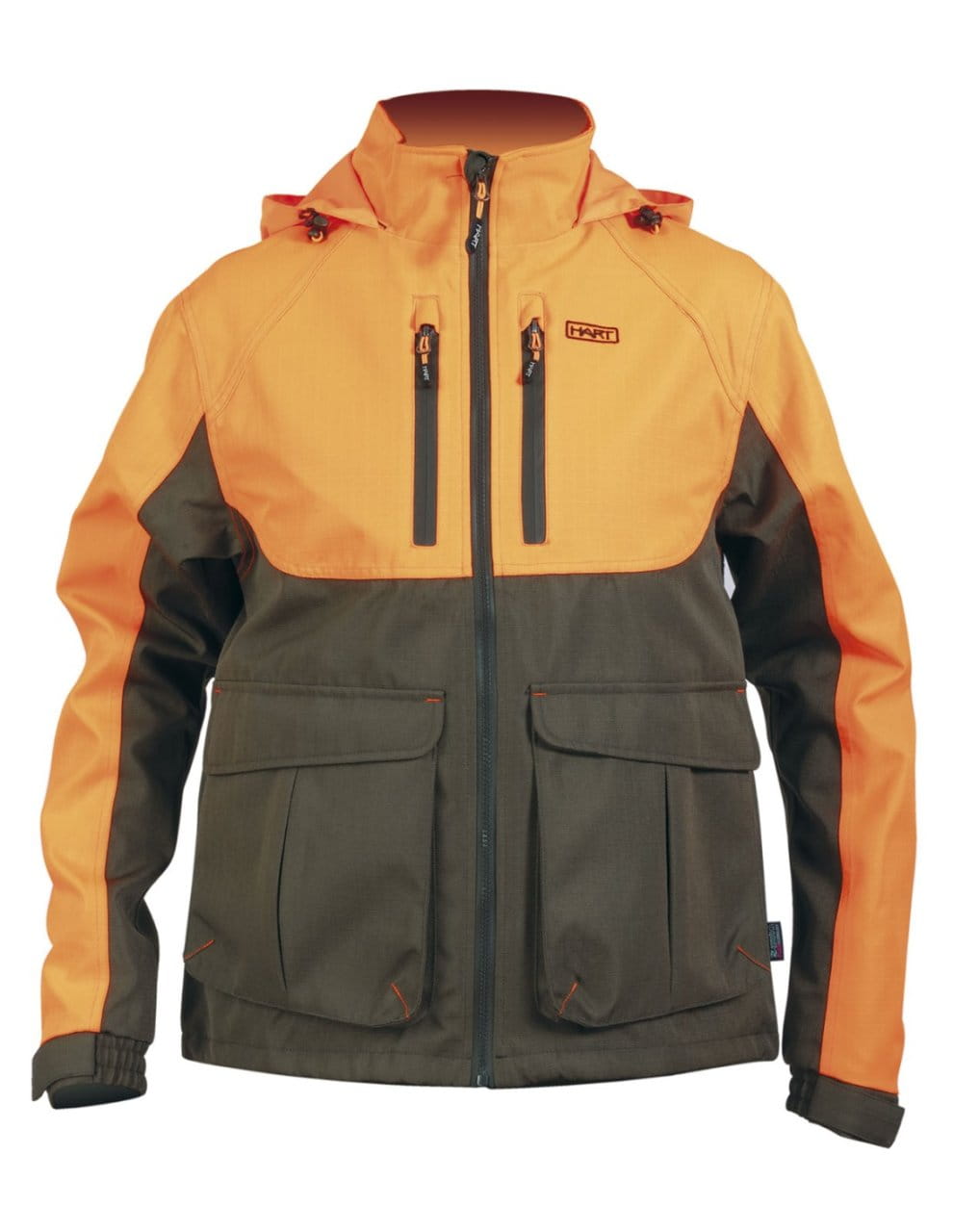 Entdecken Sie die HART ARAN ECO-J Jacke, die perfekte Begleitung für die aktive Jagd. Diese kurze, wasserdichte Jacke in auffälligem Blaze ist mit widerstandsfähigem 600D Rip-Stop-Gewebe verstärkt und bietet höchste Strapazierfähigkeit und Schutz. Hergestellt aus robustem 600D Rip-Stop-Gewebe, ist sie mit allen notwendigen Funktionstaschen ausgestattet. Zwei große Cargo-Taschen an der Vorderseite bieten reichlich Stauraum, während zwei wasserdichte Brusttaschen mit Reißverschluss, von denen eine eine Öffnung für eine Funk-/GPS-Antenne sowie einen Multimedia-Port für den Kopfhöreranschluss besitzt, zusätzlichen Komfort bieten. Eine Hasentasche mit Reißverschluss am Rücken und eine innere Brusttasche mit Reißverschluss runden die Aufbewahrungsmöglichkeiten ab.