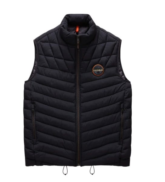 Die Weste besitzt einen Zwei-Wege-Reißverschluss mit Kinnschutz sowie zwei Einschubtaschen mit Reißverschüssen und eine Brusttasche mit Reißverschluss.