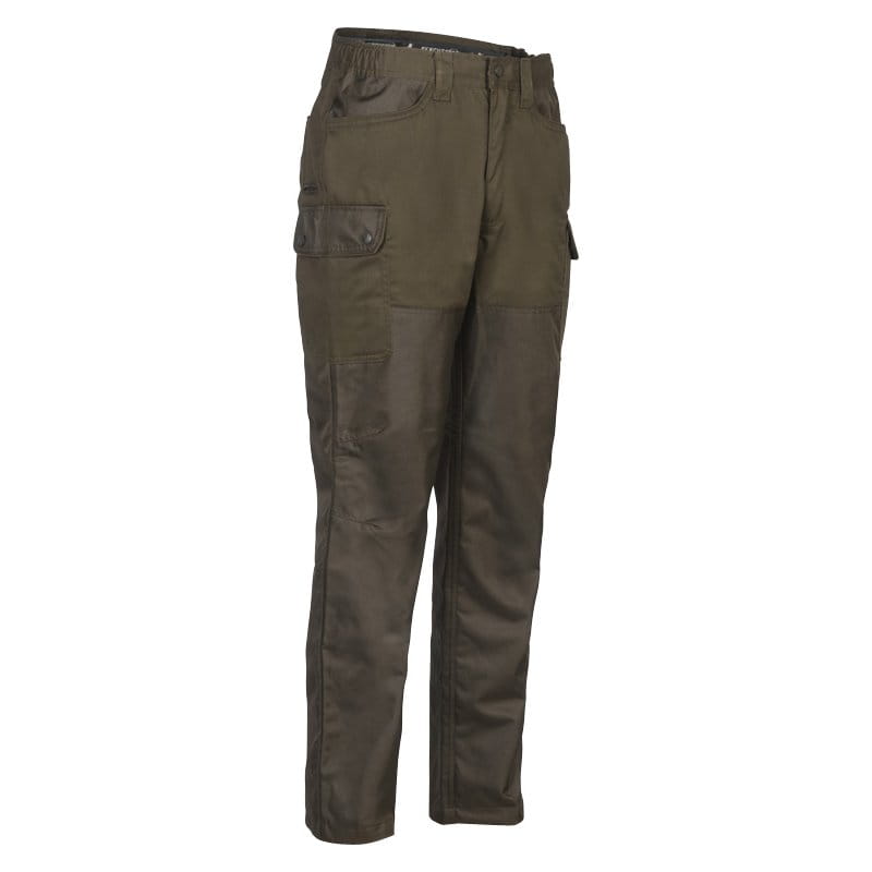 Die Roncier Hose verfügt über zwei Einschubtaschen, zwei Oberschenkeltaschen, eine Gesäßtasche und eine Messertasche. Der elastische, rutschfeste und im Rücken höhere Bund sowie die vorgeformte Kniepartie sorgen für zusätzlichen Komfort. Die Beinabschlüsse sind mit Kordelzug ausgestattet, um eine individuelle Anpassung zu ermöglichen.