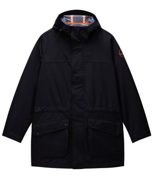 Die abnehmbare Kapuze sowie der Saum und die Ärmelabschlüsse sind individuell verstellbar, um eine optimale Passform und Schutz zu gewährleisten.