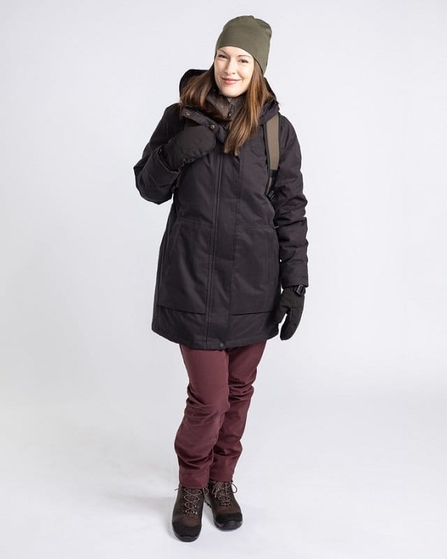 Der Pinewood Padded Winter Parka Damen ist ein idealer Begleiter für kalte Wintertage. Gefüllt mit recyceltem Polyester aus PET-Flaschen und einer Füllkraft von 550+, bietet er hervorragende Wärmeisolierung. Der Parka ist wind- und wasserdicht, verfügt über verschweißte Nähte und bietet hohe Atmungsaktivität, um bei wechselhaftem Winterwetter zu schützen. Er verfügt über geräumige Vordertaschen mit magnetischen Verschlussklappen, Handwärmetaschen mit Fleece-Futter, zwei Brusttaschen und eine Innentasche mit Reißverschluss.