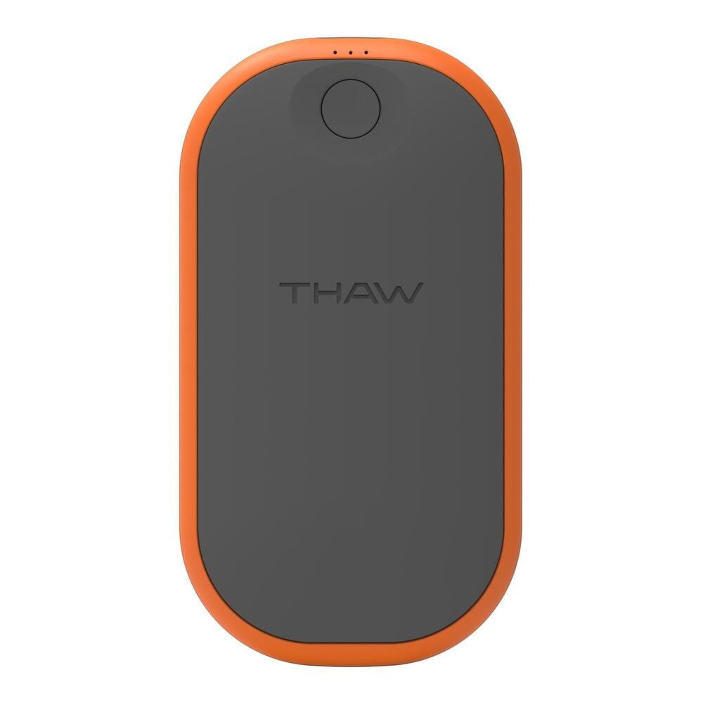 Aufladen und Aufwärmen mit dem wiederaufladbaren, ergonomisch designten Handwärmer von Thaw. Der wiederaufladbare 5.200 mAh, 3,7V Lithium-Ionen-Akku mit USB-C Input und USB-A Output ermöglicht bis zu 10 Stunden Wärme und maximal 60 Grad. Die Memory-Funktion schaltet das Gerät mit der zuletzt gewählten Einstellung ein, während Smart Power Control automatisch den nächstniedrigeren Mode aktiviert, sobald die Akkuleistung unter 33 % fällt. Kleine rote LEDs zeigen den gewählten Mode, während blaue LEDs den Akkustand anzeigen.