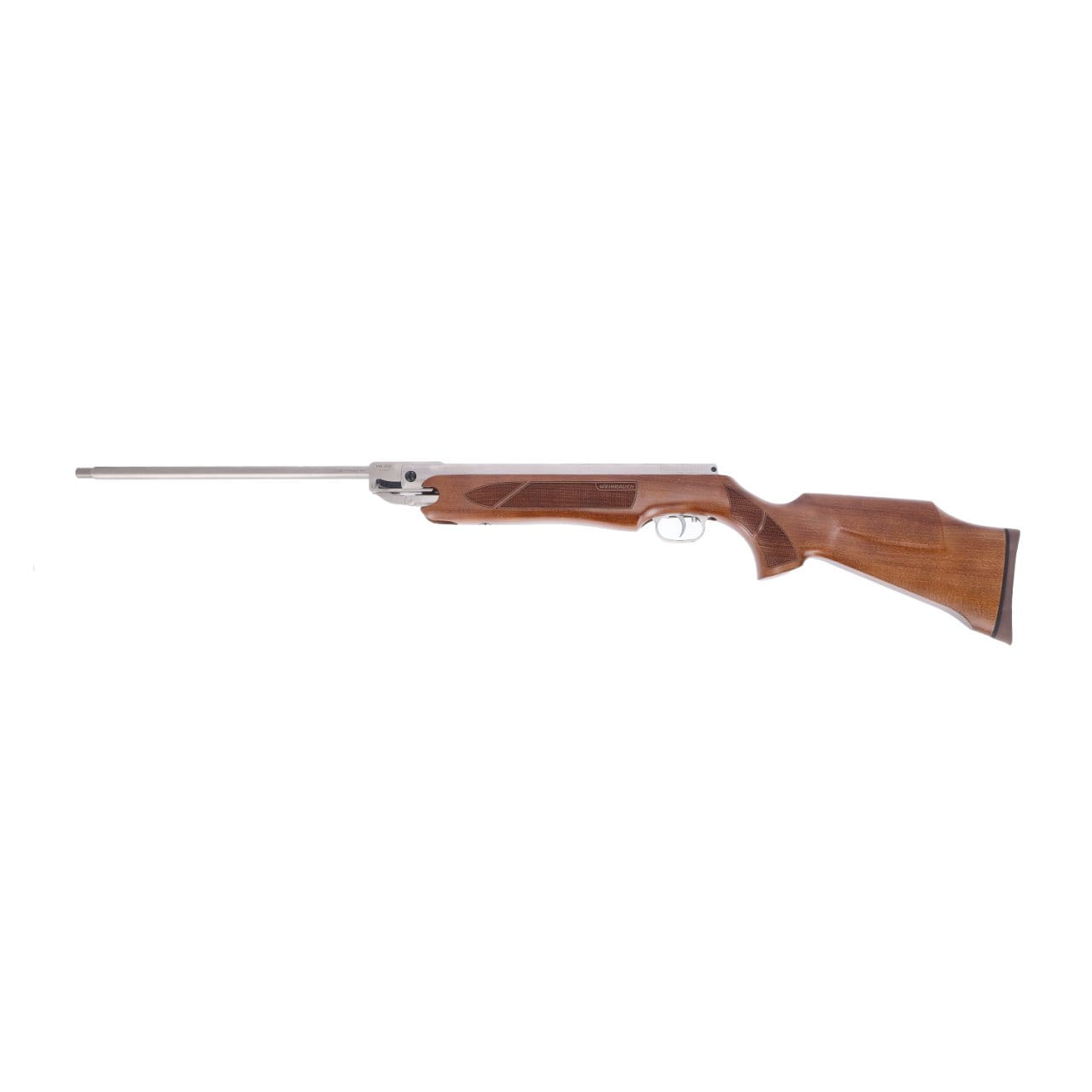 Das Weihrauch HW 35 K SD Silverwood Luftgewehr im Kaliber 4,5 mm mit Kipplauf-Federdruck-System besticht durch sein attraktives Design mit einem hellbraunen Holzschaft inklusive Gummischaftkappe, sowie einem Sportvorderschaft mit Fingerrille.