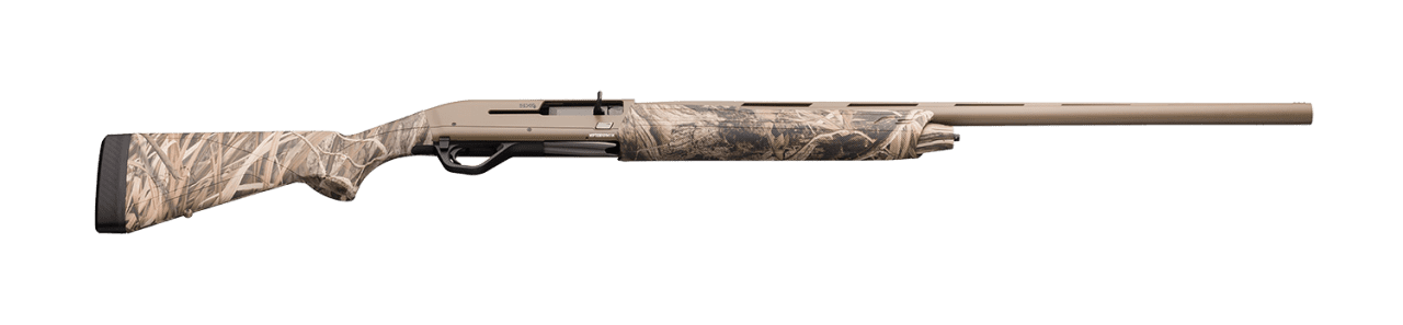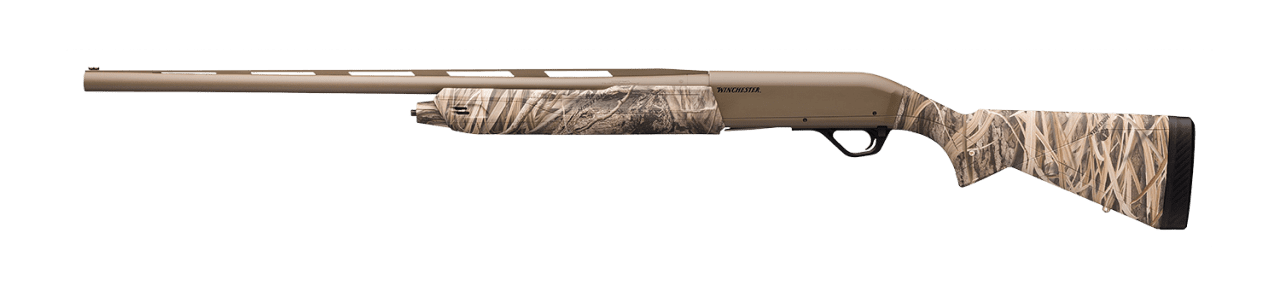 Die schnellste Selbstladeflinte der Welt ist hier mit einem Composite-Schaft mit Schilf-Camo ausgestattet und verfügt über Lauf und Gehäuse mit Cerakote-Finish Flat Dark Earth. Diese ideal für Wasservögel geeignete Waffe wird mit einem 71 cm oder 76 cm langen Lauf mit einer 6 mm Laufschiene geliefert. Die Glasfaservisierung ermöglicht eine sofortige Zielerfassung unter allen Schießbedingungen.