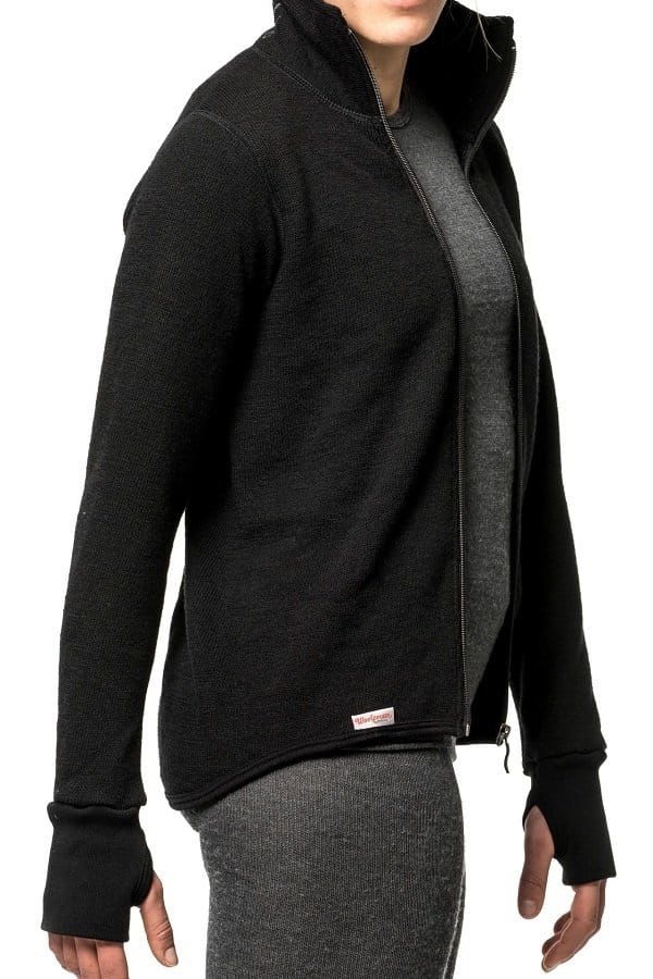 Die Jacke ist im Rundstrickverfahren gefertigt, wodurch störende Nähte vermieden werden, und bietet durch die verlängerte Rückenpartie optimalen Schutz auch bei Bewegung. Der hohe, doppelt gestrickte Kragen sowie die Daumenlöcher an den Bündchen garantieren zusätzlichen Komfort und Wärme. Ein durchgehender Frontreißverschluss erleichtert das An- und Ausziehen.