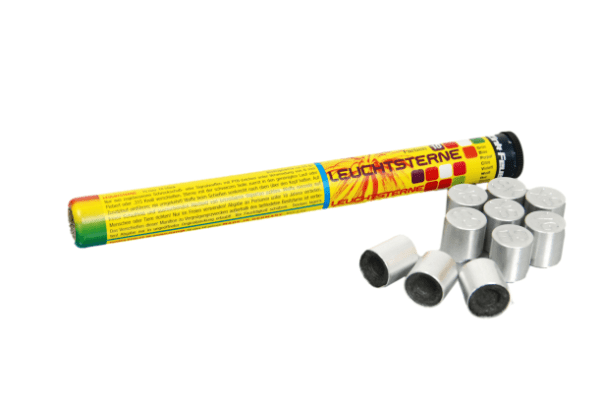 Die Zink Feuerwerk Orchidee Signalsterne 10 Stk. 15 mm erzeugen einen Silberschweif und bunte Farbperlen.